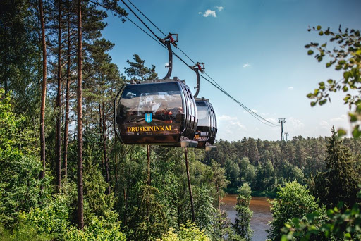 Na ir kelionę vainikuosite pasižiūrėdami į Druskininkus iš viršaus. Keliausite lynų keliu*, – tai vieno lyno sistemos įrenginys su keturiomis uždaromis kabinomis – gondolomis, pakylančiomis į 45 m aukštį. Gondolos pagamintos iš skaidraus stiklo, todėl iš tokios judančios apžvalgos aikštelės matysite įspūdingą Druskininkų panoramą.